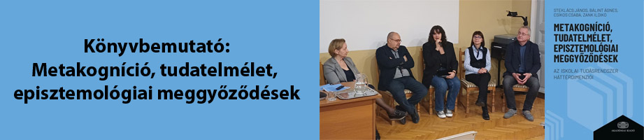 On the 20th of November, the head of our institute, Csaba Csíkos, together with his colleagues from the University of Pécs, János Steklács, Ágnes Bálint, and Ildikó Zank, presented their monograph entitled Metacognition, Theory of Mind, Epistemological Beliefs: Background Dimensions of the School Knowledge System.